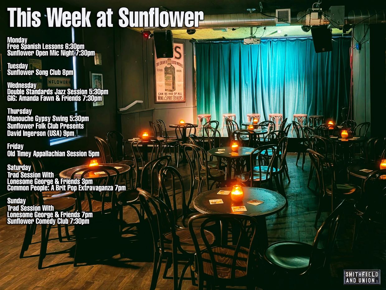 The Folk Club draws its inspiration from the many successful Belfast folk clubs over the years. In particular we acknowledge the legacy of the original Sunflower Folk Club which ran from the 1960’s until the 1980’s in the old Sunflower Bar in Corpration Street in Belfast’s Sailortown area. The format each week will be a guest artist/artists supported by regular performers and ‘floor’ singers.